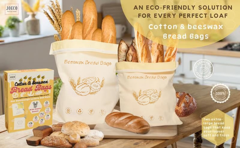 Nature’s Materials for Lasting Freshness: Made from real beeswax and pure cotton, these breathable bags are perfect for all loaf sizes, from sourdough to muffins. Safe for food use, they support a natural lifestyle and enhance bread storage.